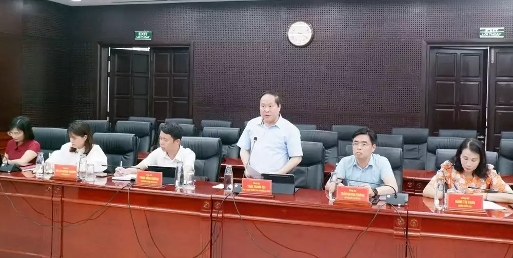 Phó Chủ tịch Thường trực UBND tỉnh Lai Châu Tống Thanh Hải trao đổi tại buổi làm việc