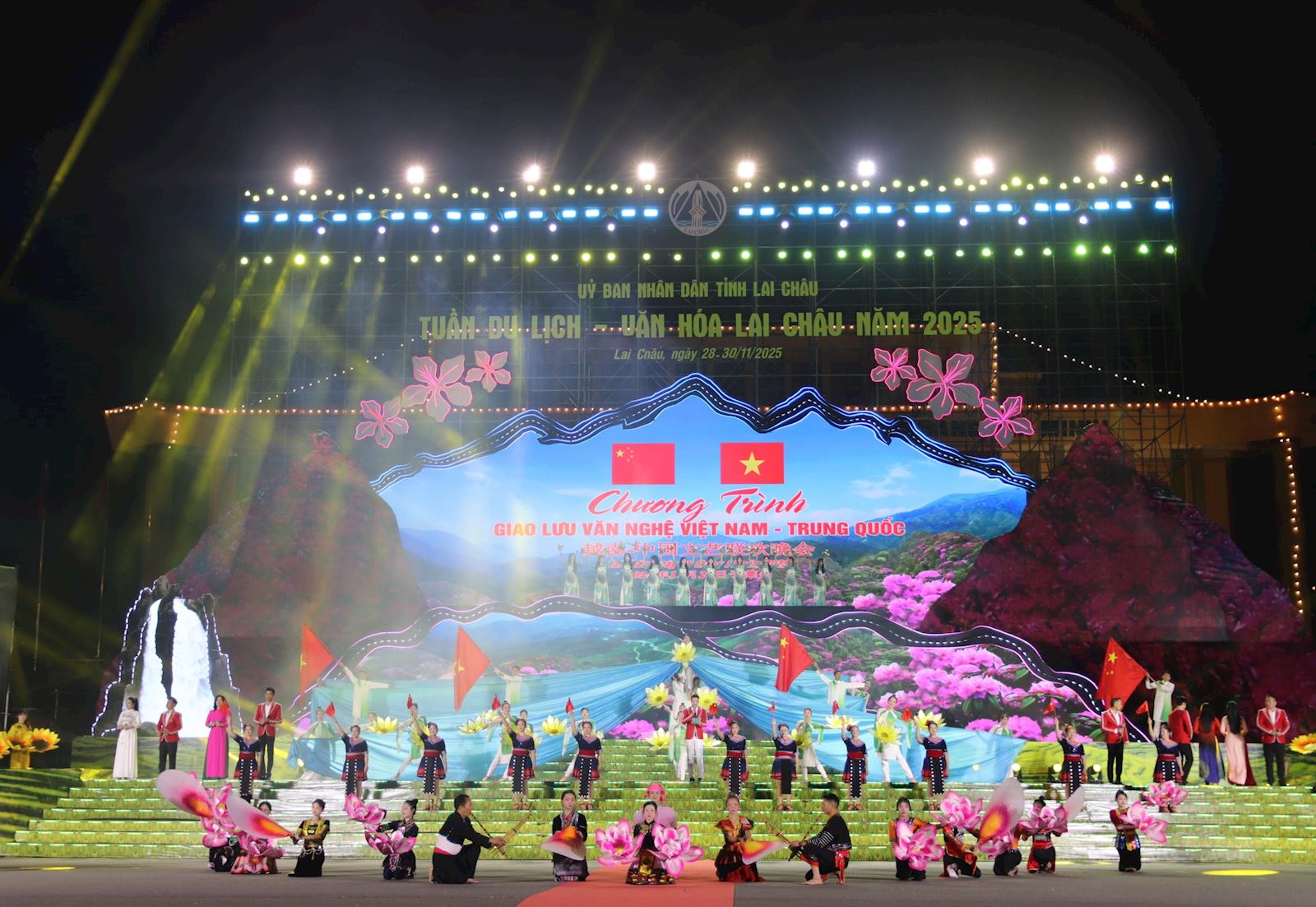 Tối 29/11, tại Quảng trường Nhân dân tỉnh Lai Châu, chương trình giao lưu nghệ thuật Việt Nam – Trung Quốc với chủ đề “Biên cương hữu nghị” đã diễn ra sôi nổi. Đây là một trong những hoạt động điểm nhấn của Tuần Du lịch – Văn hóa và Giải Marathon Lai Châu lần thứ II năm 2025.