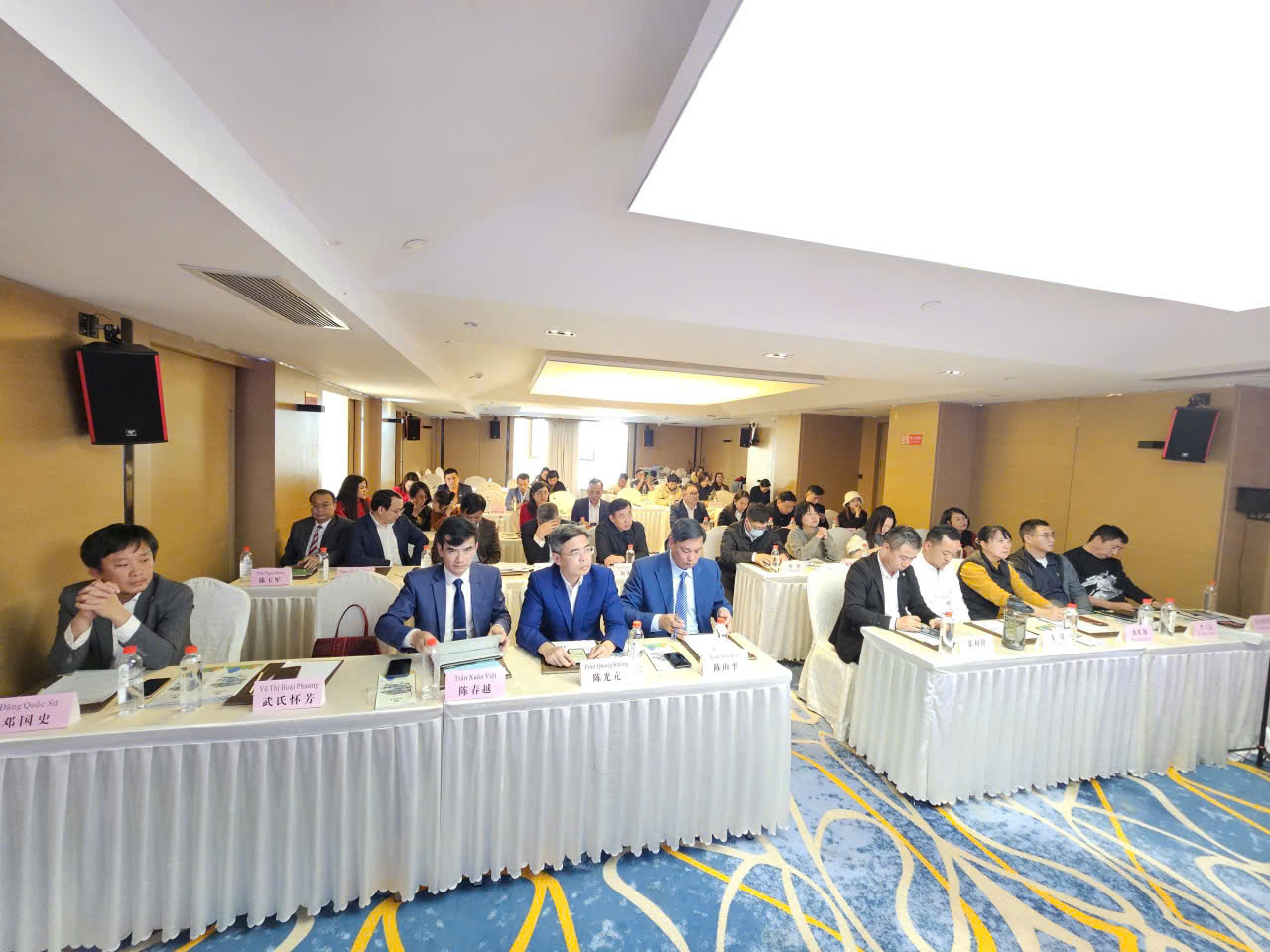 Các đồng chí đại biểu tham dự Hội nghị xúc tiến quảng bá du lịch Tây Bắc tại thành phố Mông Tự, tỉnh Vân Nam, Trung Quốc tập trung thảo luận và trao đổi