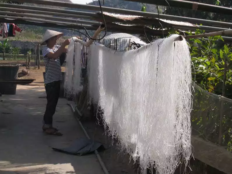 Theo kinh nghiệm của người dân làng nghề, để miến ngon, việc chọn địa điểm phơi cũng rất quan trọng. Khoảng sân hoặc vườn phải đảm bảo sạch sẽ, thoáng và là nơi hấp thụ tốt nhất ánh sáng mặt trời. Trên đó, được thiết kế cọc trụ bằng tre, bêtông có chiều cao từ 60cm trở lên để tránh bụi, độ ẩm của đất. Các trụ này được kết nối bởi những sợi dây chắc (thép, dây chuyên dụng…) có độ bền để làm giá đỡ cho những phên miến. Khi miến đạt độ se nhất định sẽ được chuyển sang dây phơi cao hơn (từ 1,5m trở lên) cho đến khi khô thì được gấp, buộc thành từng bó miến thành phẩm.