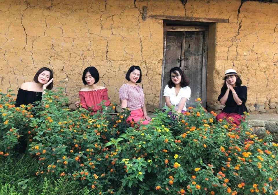 Giữa ngôi nhà đất nhuốm màu thời gian, sắc hoa nhỏ nở dịu dàng như cách Sì Thâu Chải chậm rãi chữa lành những tâm hồn mỏi mệt. (nguồn ảnh: Thu Huyền)
