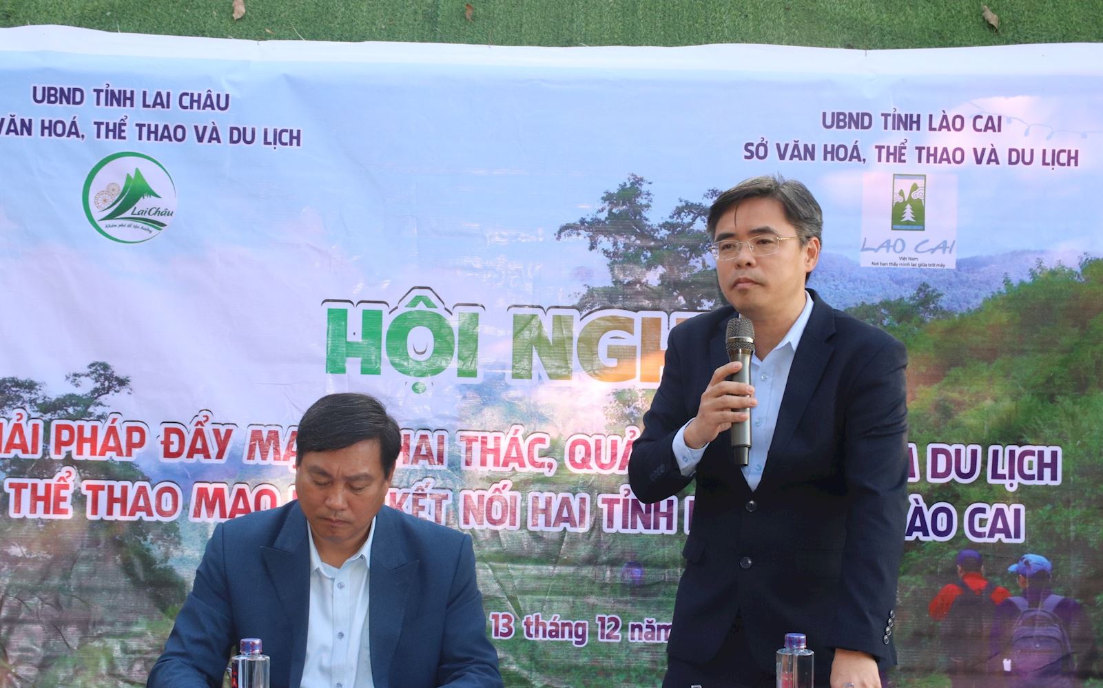 Đ/c Trần Quang Kháng - Phó Gíam đốc Sở Văn hóa, Thể thao và Du lịch tỉnh Lai Châu và Đ/c Trần Sơn Bình - Phó Gíam đốc Sở Văn hóa, Thể thao và Du lịch tỉnh Lào Cai Chủ trì Hội nghị.