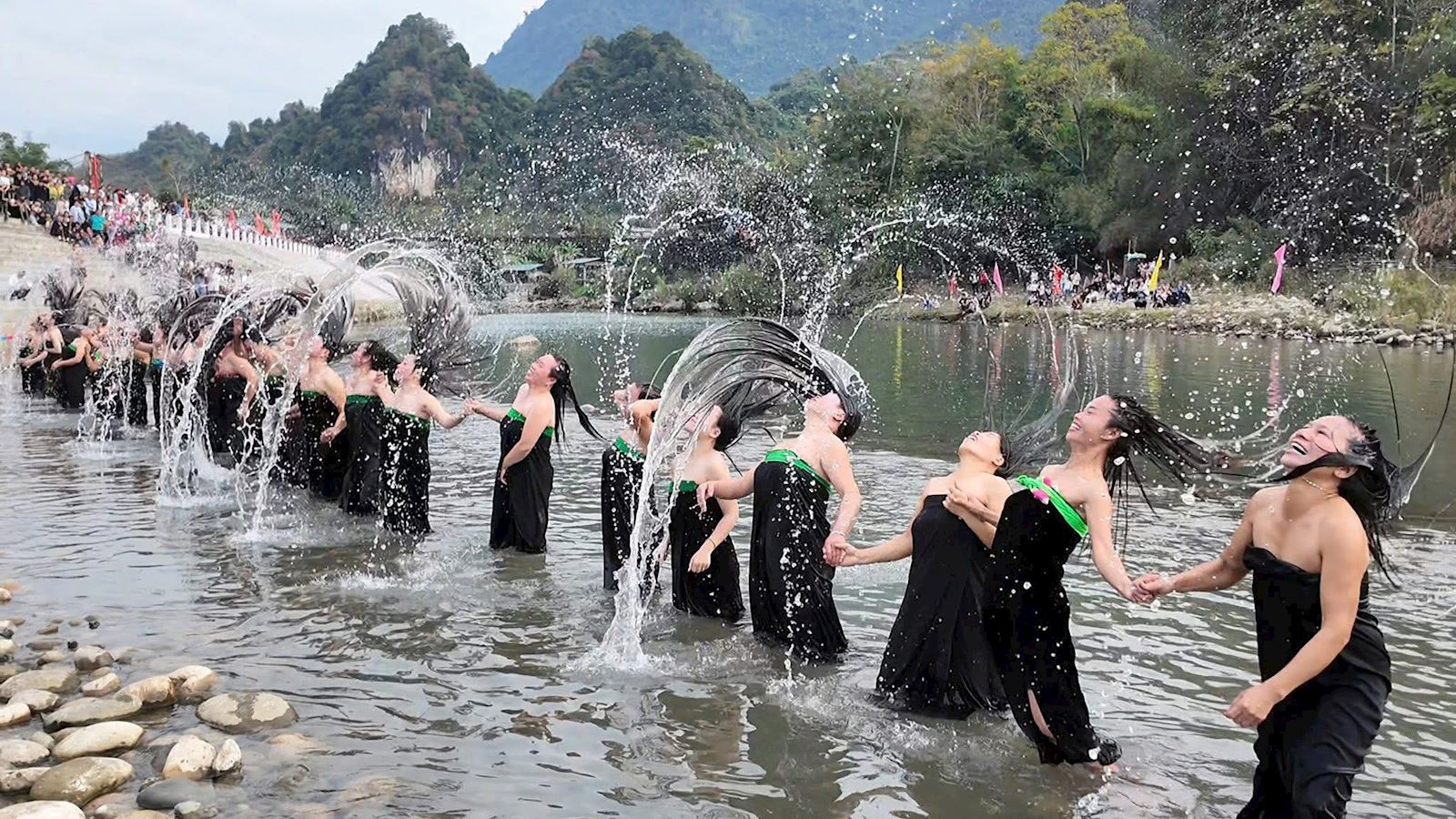 Điểm nhấn đặc biệt của lễ hội là nghi thức “Áp hô Pang” – trình diễn gội đầu truyền thống của dân tộc Thái. Nghi thức này không chỉ mang ý nghĩa làm sạch, mà còn gửi gắm ước vọng về sức khỏe, bình an và những điều tốt đẹp trong cuộc sống. Kết hợp với hoạt động té nước cầu may, đây sẽ là trải nghiệm độc đáo, thu hút đông đảo du khách tham gia và lưu lại những kỷ niệm đáng nhớ.